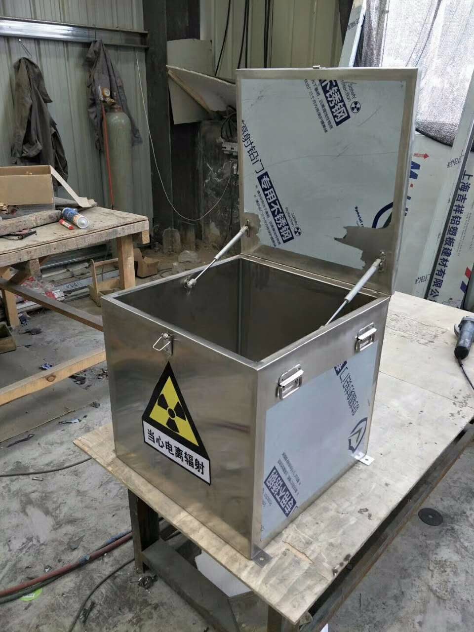移动铅箱:移动铅箱带有移动轮子,现在越来越多的用户使用放射性废物存储铅箱,所以它在气体、盐酸、水和海面上具有很好的耐腐蚀性。然后将铅箱和细木工板(解决了防火安全和防腐蚀问题后)组合粘贴,可以阻挡空气氧化、硫化橡胶、熔化或蒸发等影响。有必要找到一种能够"阻挡"这些射线的材料作为容器。铅箱是一种常用的放射源储存容器